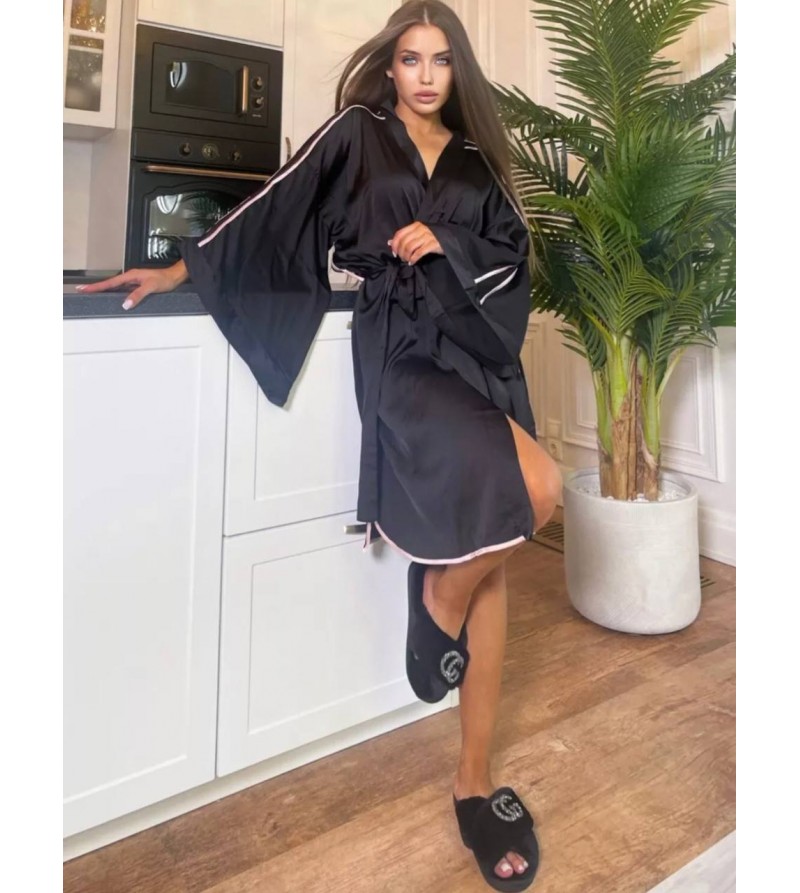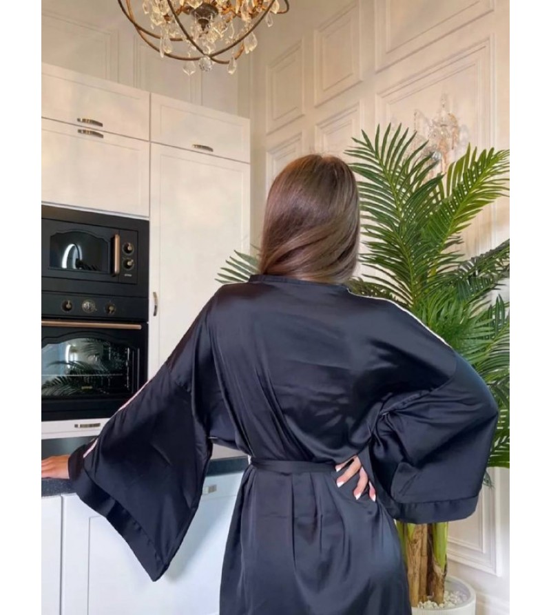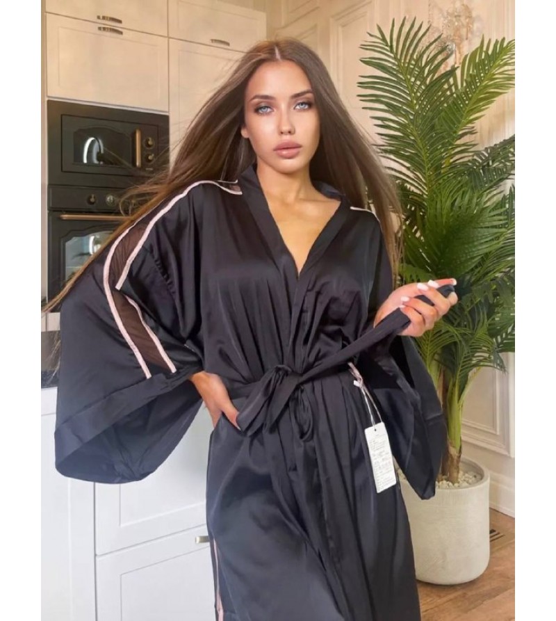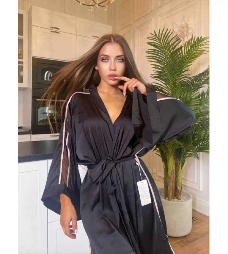 Соблазнительный халат в стиле кимоно, с разрезами на бедрах. Идеален для утреннего времяпровождения.